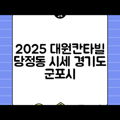 2025년 10월에 경기도 군포시 당정동 대원칸타빌 아파트의 시세 변화에 대한 걱정이 많으실 것입니다.