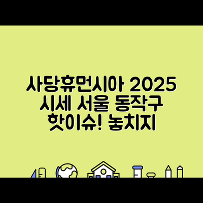 서울시 동작구 사당동의 아파트 시세를 이해하고 예측하는 데 도움이 되는 가이드를 제공합니다. 이 가이드는 2025년 11월 사당휴먼시아 아파트의 시세 분석을 기반으로 하고 있습니다.