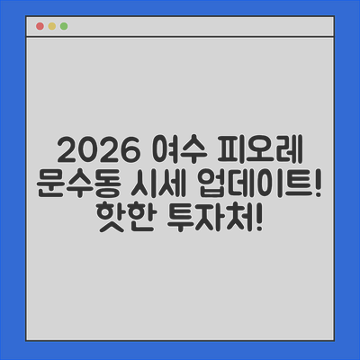 2026년 1월 전라남도 여수시 문수동 피오레 아파트의 시세를 바탕으로 투자 유망성을 분석해 보겠습니다. 이 가이드에서는 단계별로 어떻게 분석하고 결정할 수 있는지 알려드립니다.