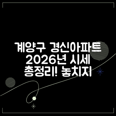 종합적으로 보았을 때, 인천시 계양구 계산동 경신 아파트의 2026년 시세는 여러 요인에 따라 다르게 예측될 수 있습니다. 매매를 고려하는 경우 지속적인 가격 상승을 목표로 하며, 전세를 선호할 경우 안정성을 중시하는 접근법이 필요합니다.